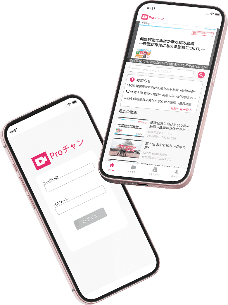 「Proチャンネル」は簡単に動画を配信・視聴できる、社内専用の動画コミュニケーションプラットフォームです。情報共有をスピーディに行い、 動画を通じて企業文化を育成。社員同士の理解とつながりを深め、組織の一体感を高めます。